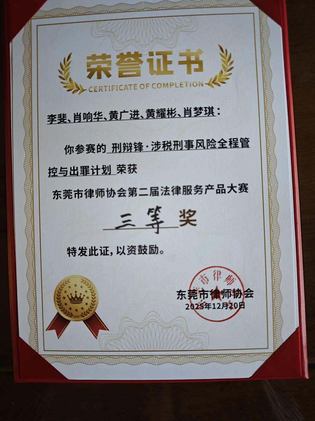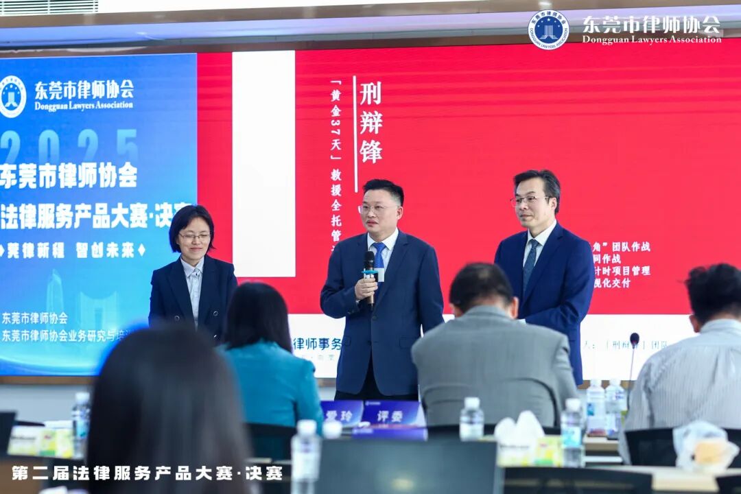 2025年12月20日,东莞市律师协会第二届法律服务产品大赛决赛现场,一场关于“法律服务创新力”的巅峰对决圆满落幕。在11位专家评委的严格评审下,广东高宽律师事务所“刑辩锋团队”脱颖而出——其开发的《“黄金37天”救援全托管计划》以88.8分斩获全场最高分,摘得一等奖;另一产品《刑辩锋·涉税刑事风险全程管控与出罪计划》以87.53分荣膺三等奖,成为本届大赛唯一包揽一等与三等双项大奖的律所!这一成绩不仅是对高宽律所在法律服务产品化领域深耕的最佳印证,更以“系统破局者”的姿态,为行业转型升级注入了强劲动能。